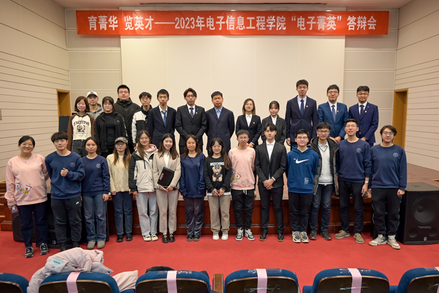 在评委问辩中,在场评委们对如何平衡学习科研和学生工作的时间、个人未来的发展打算、完成的科研成果的具体内容等方面进行提问。一问一答中,“电子菁英”便有了定义。“电子菁英”是多年如一日的艰苦奋斗与拼搏进取;是在科研挑战面前勇于创新,敢为人先的责任担当;是帮助同学的兼爱无私与笃行奉献;是涉猎广泛,德智体美劳全面发展下的追求卓越。或许每个人都有心中“电子菁英”的标准,但候选人们的身体力行,赢得了评委和观众的掌声与肯定。