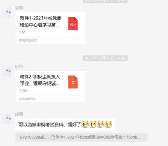 身处新时代,只有具备扎实的专业基础,才能适应发展需求,为国家建设和民族复兴做出更大贡献,更好的履行为人民服务的宗旨。支部党员发挥先锋模范作用,督促大家努力科研学习,在考期分享学习资料,对于学习上有困难的同学进行帮扶,以期实现大家共同进步。